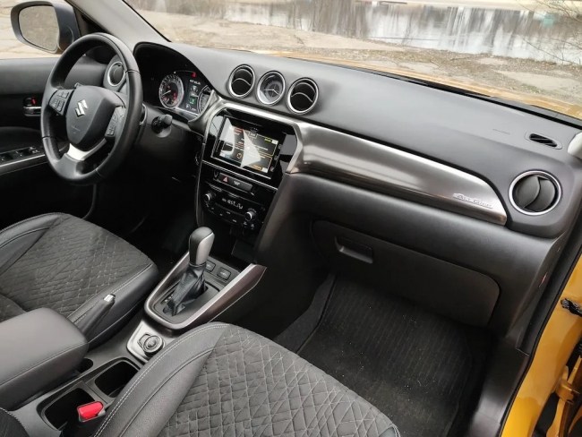 Цікава деталь: якщо у звичайного турбованого 1.4 віддача 140 к.с., то в гібридному виконанні маємо 129 к.с., але на додачу 14 к.с. від стартера-генератора. Тож виходить навіть на 3 к.с. більше! Звісно, це я зараз більше у формі жарту, адже відчути таку різницю сидячі за кермом не вдастся. Втім вже з перших кілометрів помітно, що Вітара дуже впевнено їде в зоні малих та середніх обертів, жодних «провалів» або просідання по тяговому зусиллю. Крутний момент тут становить 235 Нм і доступний він вже з 2 000 обертів.